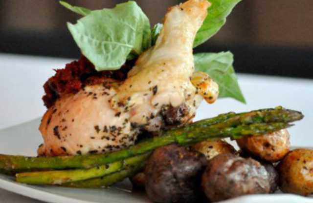 Ms. T.J. joined me on this outing and selected a prosciutto–stuffed Ashley Farms organic chicken breast as her main course, following a traditional Caesar salad opening plate.
